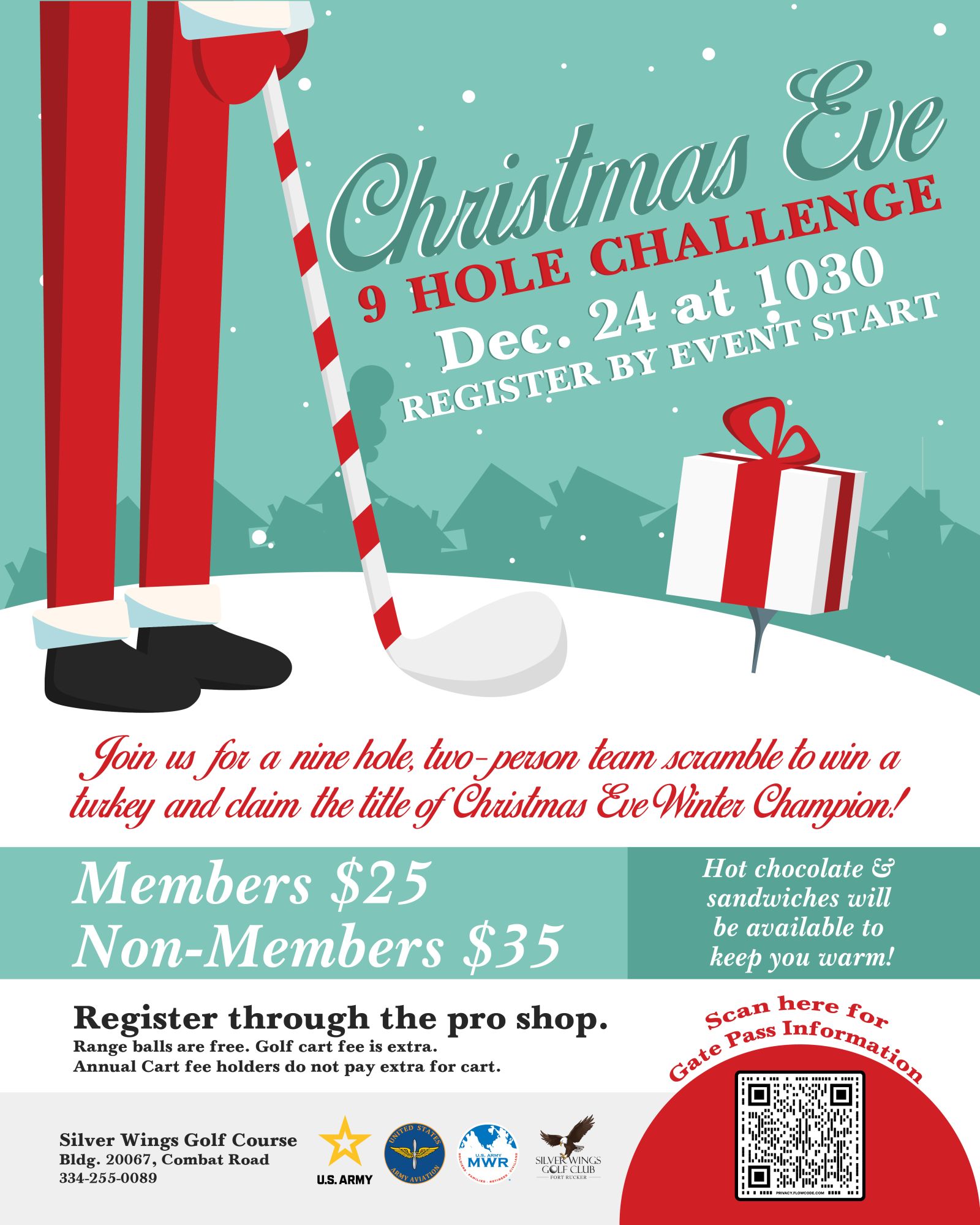 Join us for a nine hole, two-person team scramble to win a turkey and claim the title of Christmas Eve Winter Champion!