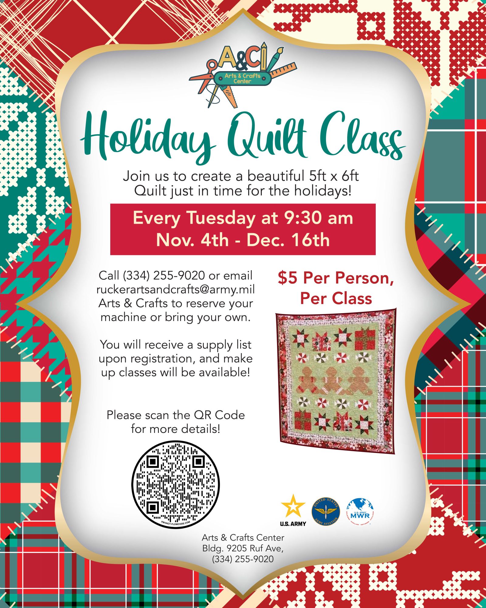 Join us to create a beautiful 5ft x 6ft Quilt just in time for the holidays!