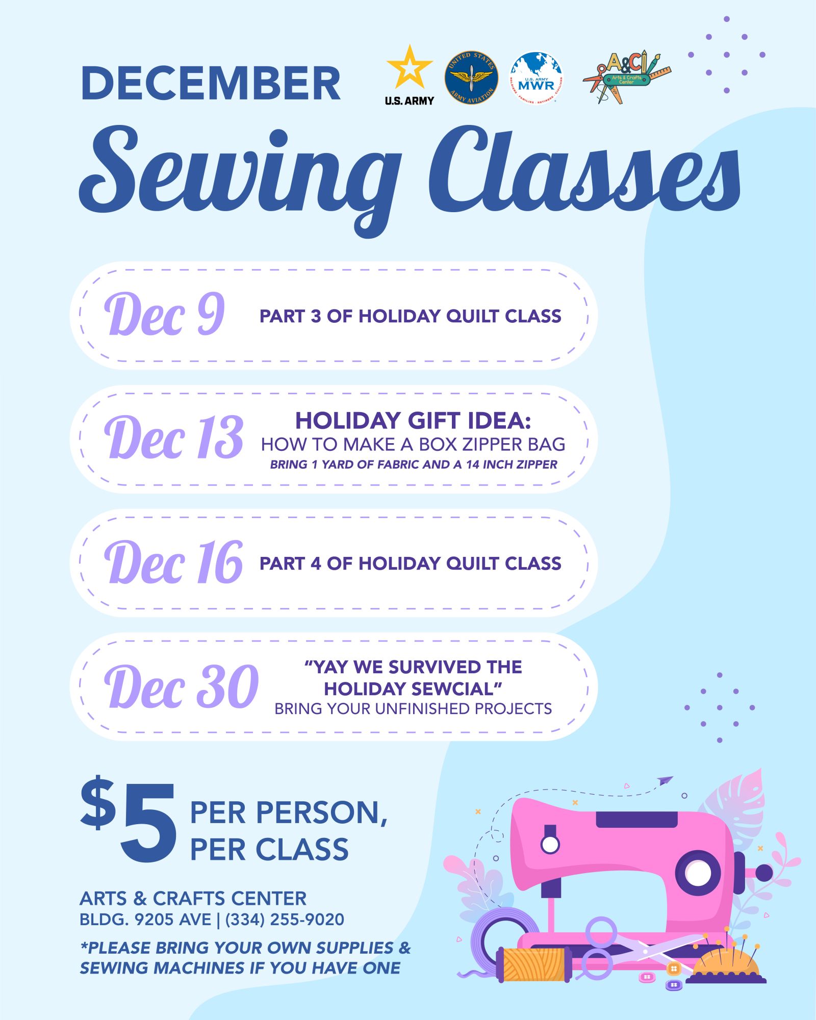 Want to learn a new skill? Join us at Arts & Crafts for these four wonderful classes throughout the Month of December!