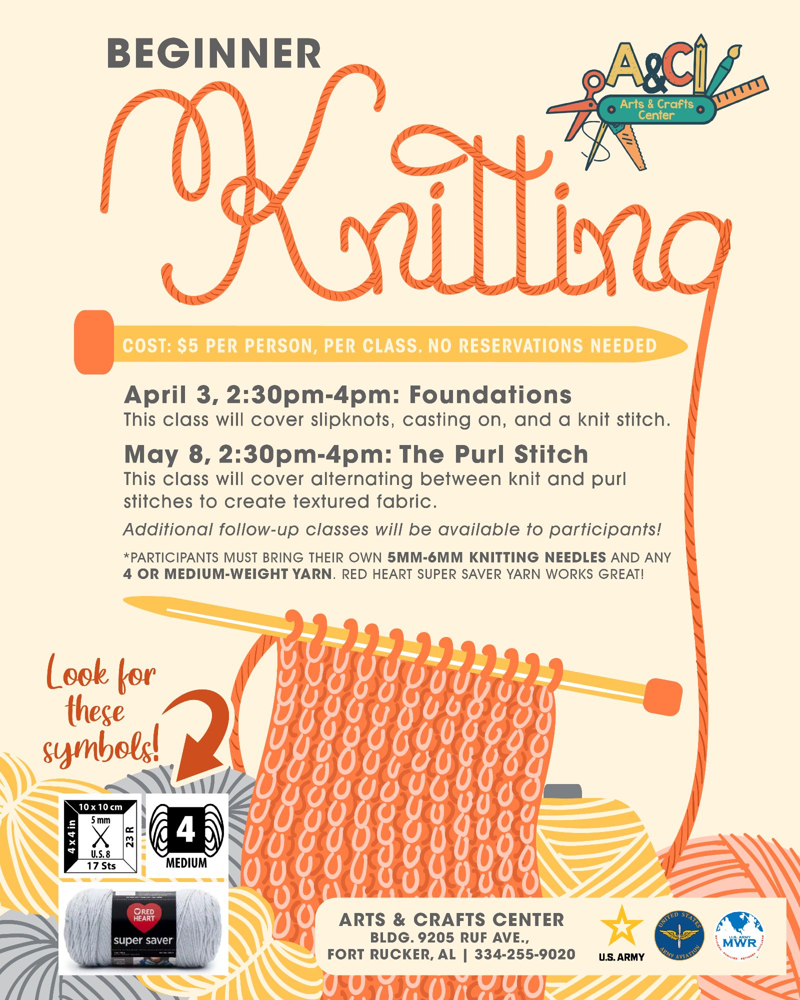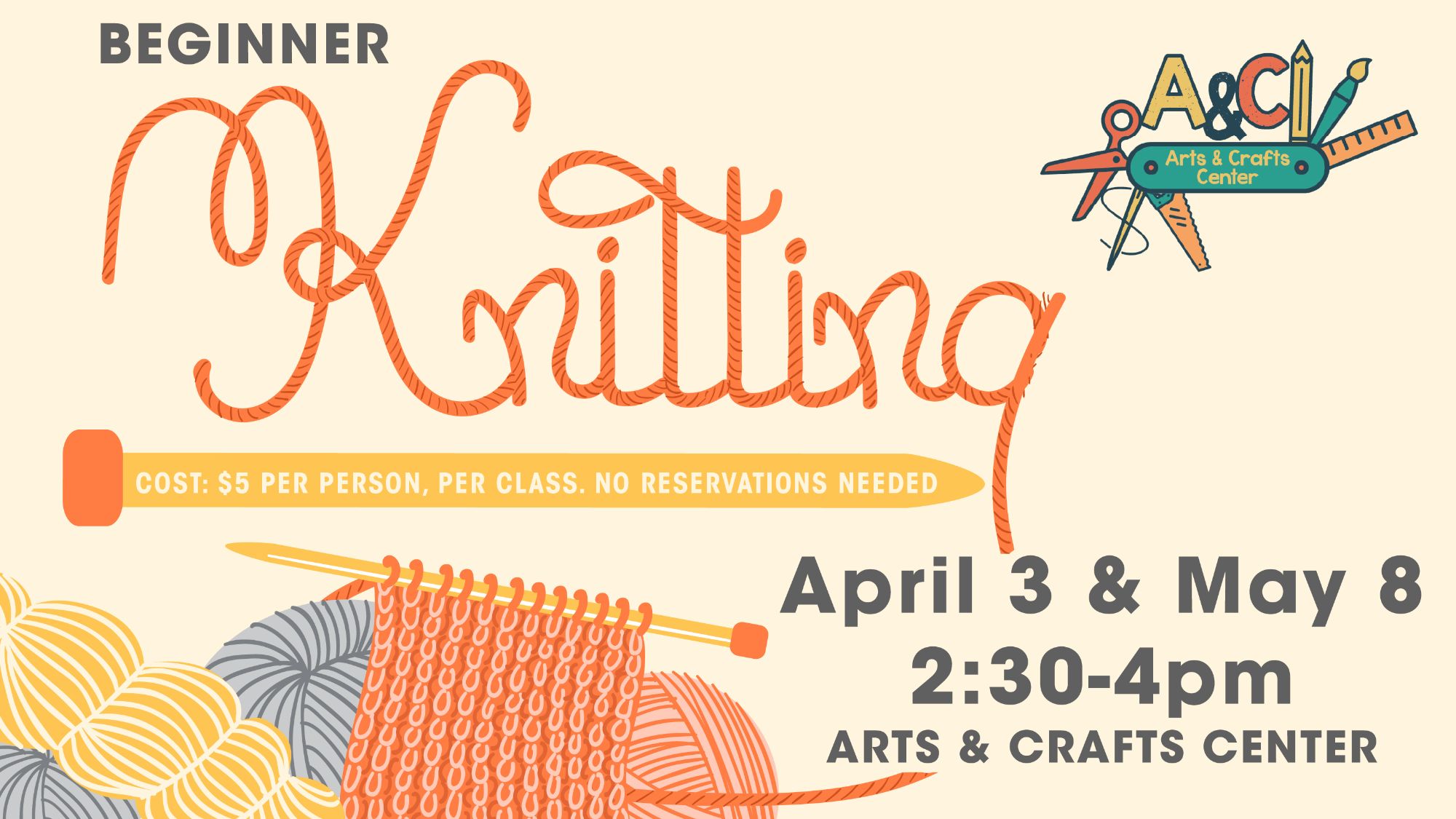 Have you always wanted to learn how to knit? Now is the perfect time! The Arts & Crafts Center is excited to offer a series of beginner knitting classes designed to teach you the fundamentals and get you started on your crafting journey. These casual, drop-in classes are perfect for absolute beginners.