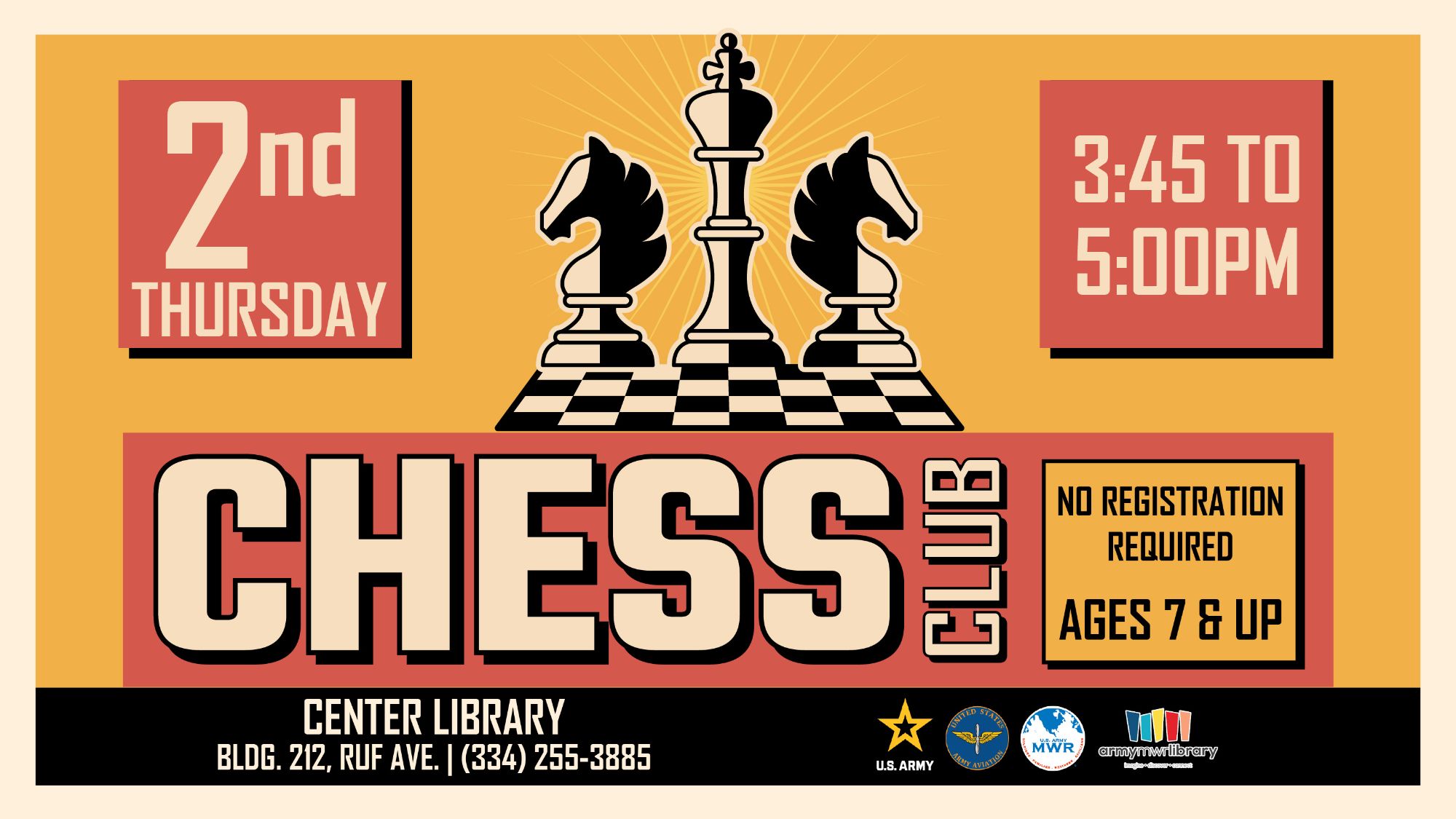 Are you ready to master the game of kings? The Center Library invites you to join our monthly Chess Club, the perfect place to sharpen your mind and challenge your strategic skills. Whether you're just learning the fundamentals or you're a seasoned strategist, our club is for you!