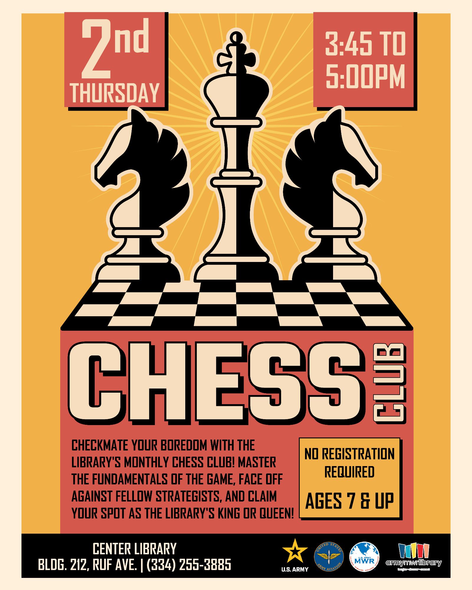 Come and face off against fellow players, learn new tactics, and claim your spot as the library's reigning king or queen! It's a fantastic way to meet new people, engage in friendly competition, and checkmate your boredom.