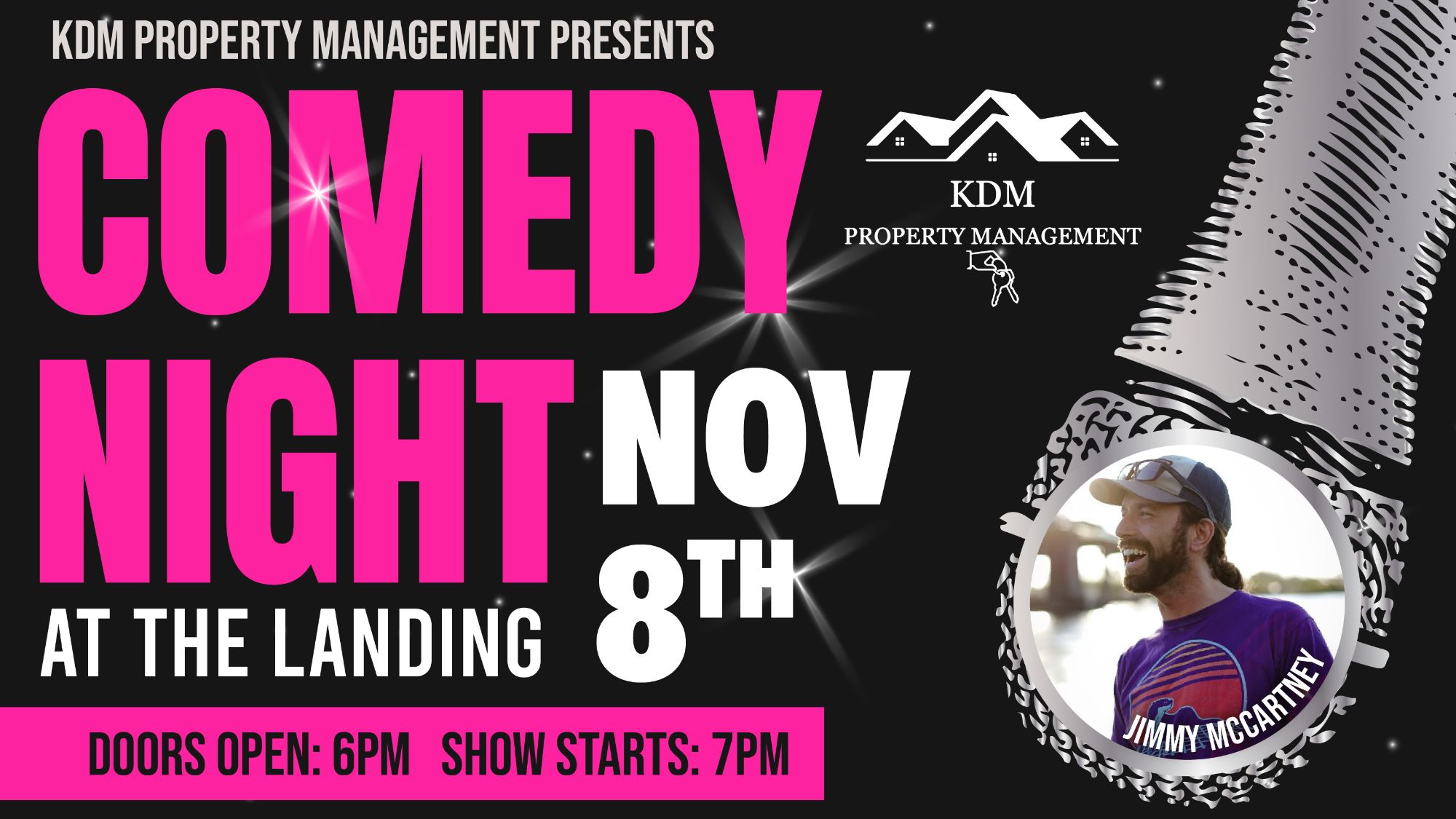 Doors Open 6pm Show Starts 7pm Get your tickets at either Joey's Brew, The Flightline, Big Mike's, Silver Wings Golf Course, or Leisure Travel!