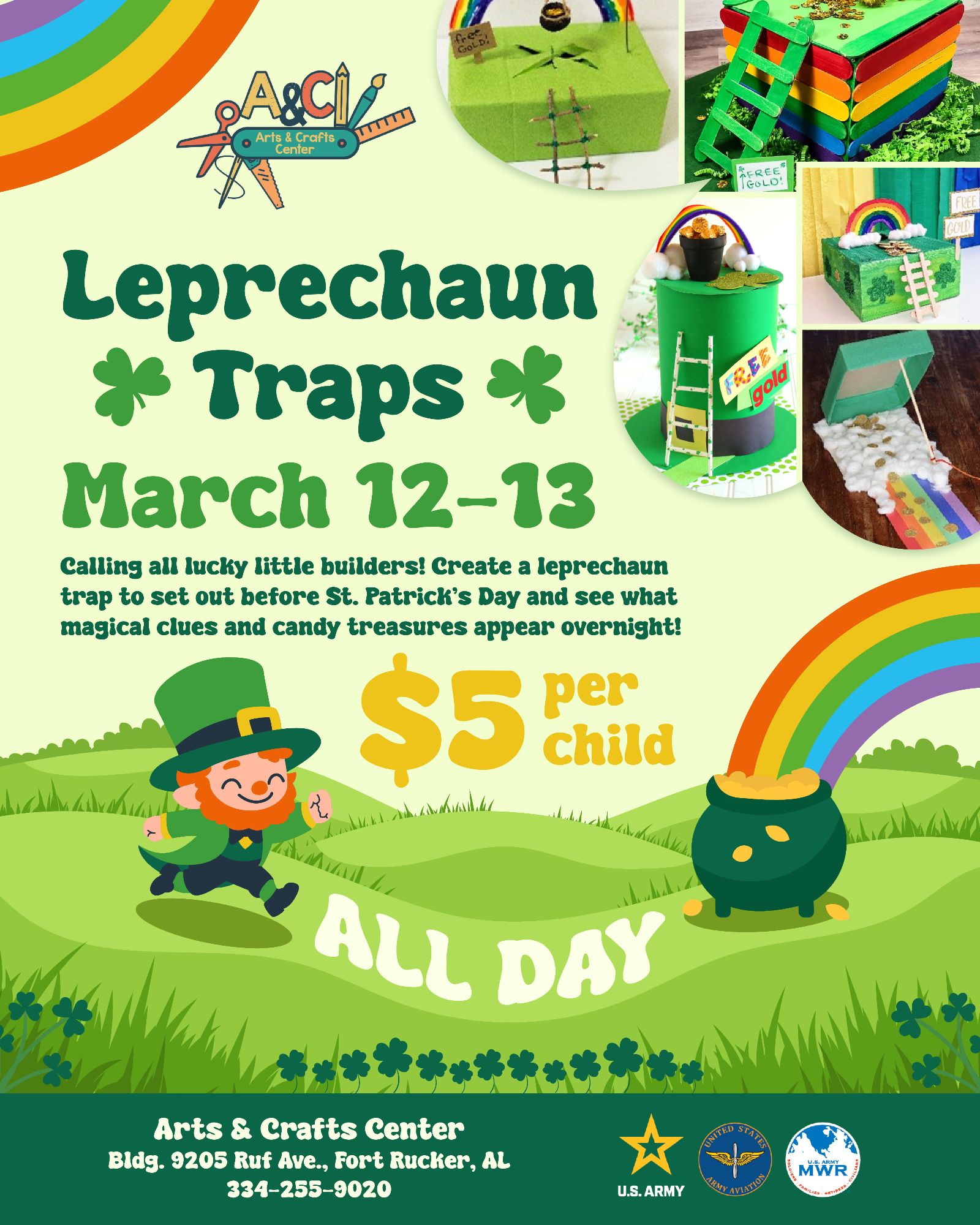 Join us at the Arts & Crafts Center for a wonderfully creative event where your child can design and build their very own leprechaun trap! It's the perfect activity to get into the St. Patrick's Day spirit.