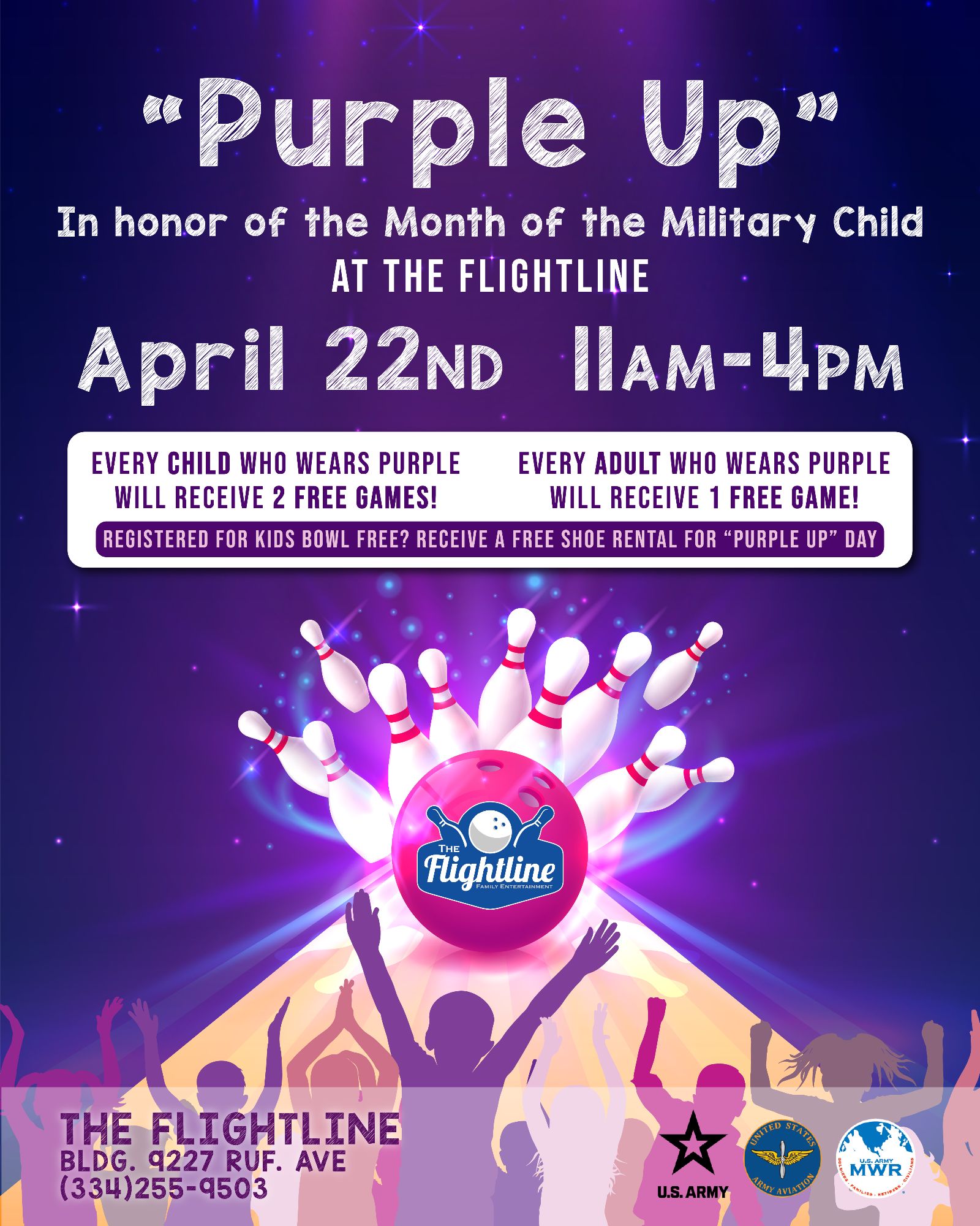Get your office, your unit, your family, and your friends involved. Let's create a sea of purple across Fort Rucker and show our military kids how much their community supports them.
