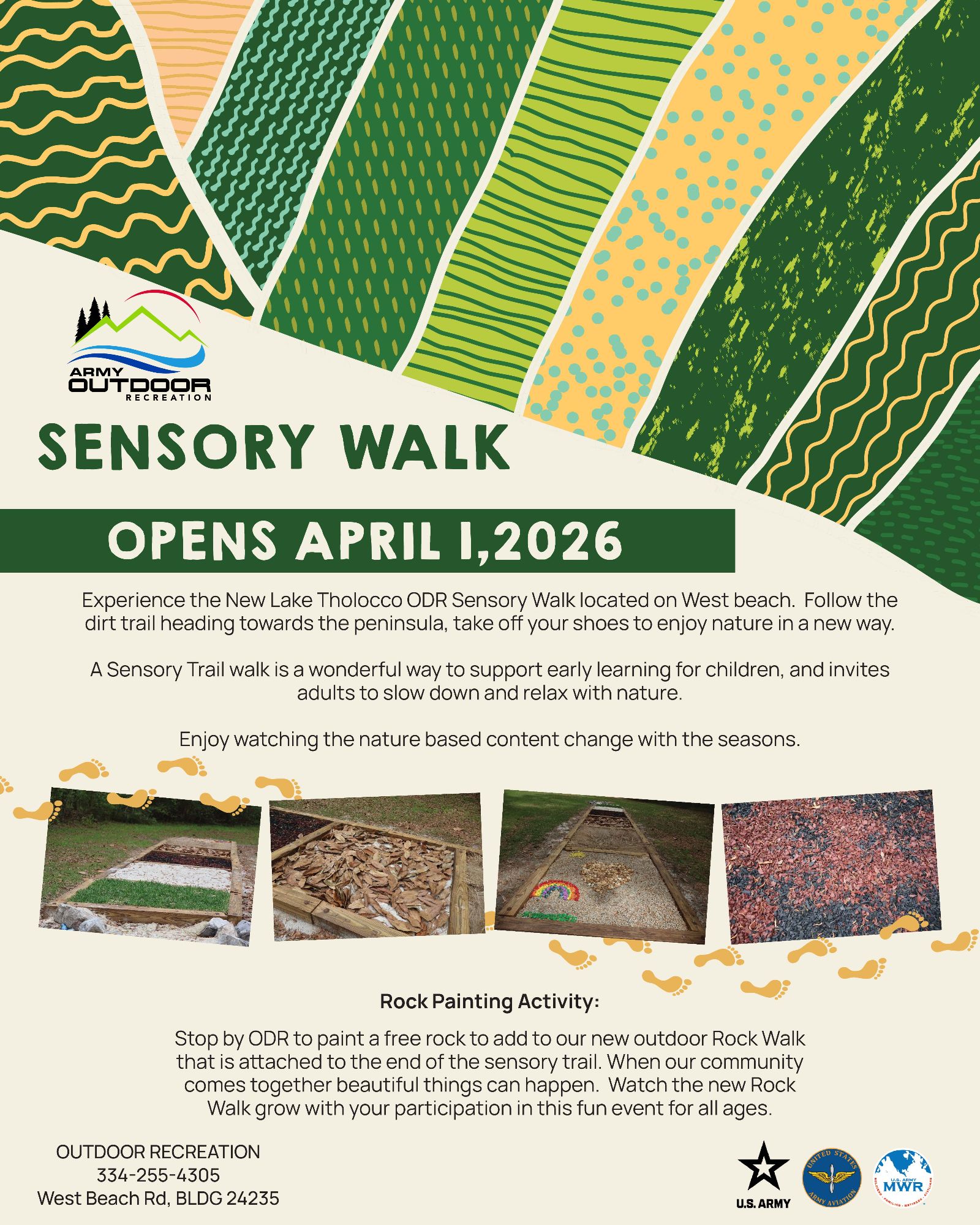 Engage your child's senses in a fun and exciting new way! The Exceptional Family Member Program (EFMP) invites you to a FREE Sensory Walk, a delightful outdoor experience designed for children of all ages and abilities.