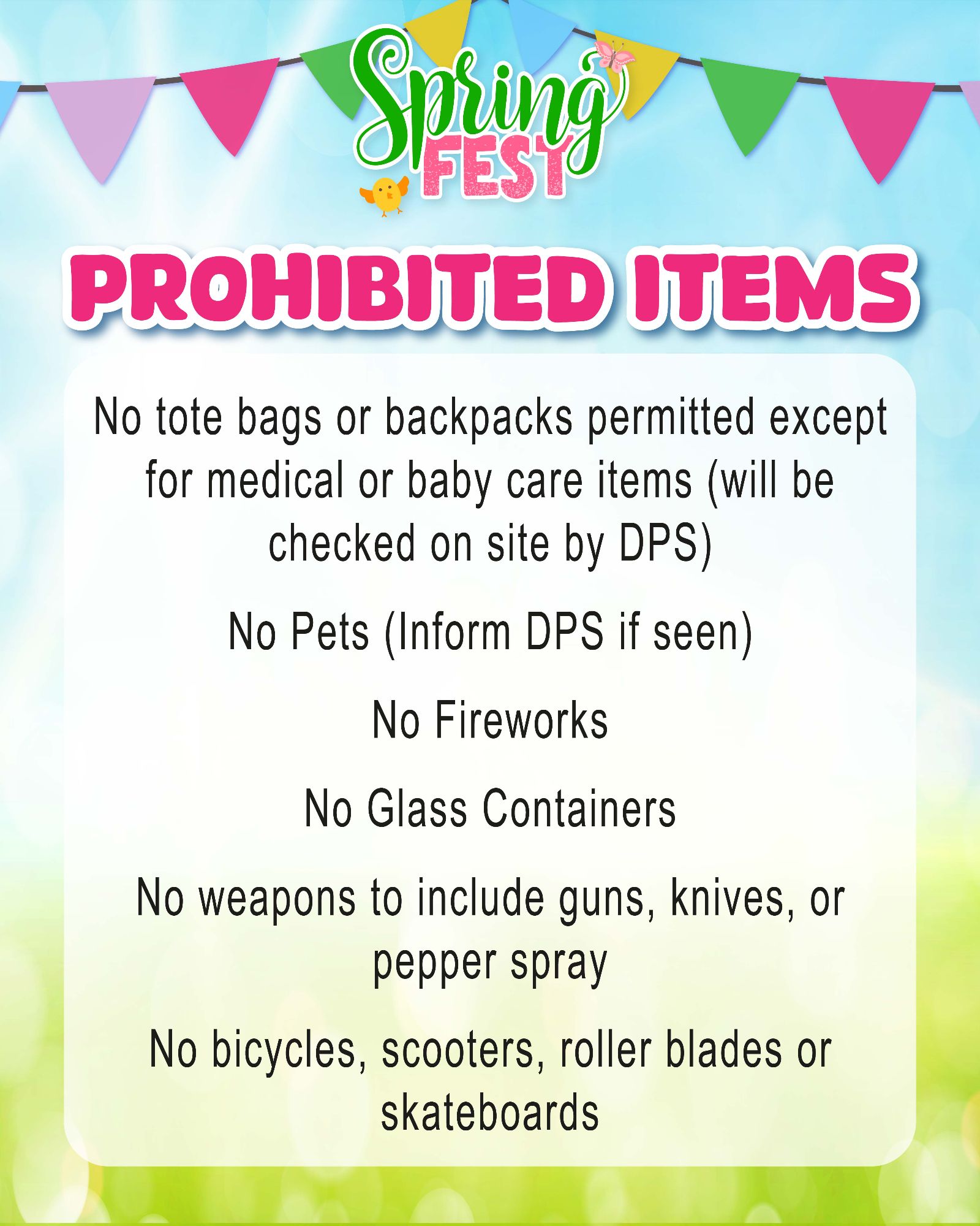 - No roughhousing, Shoving, or pushing during the egg hunt.