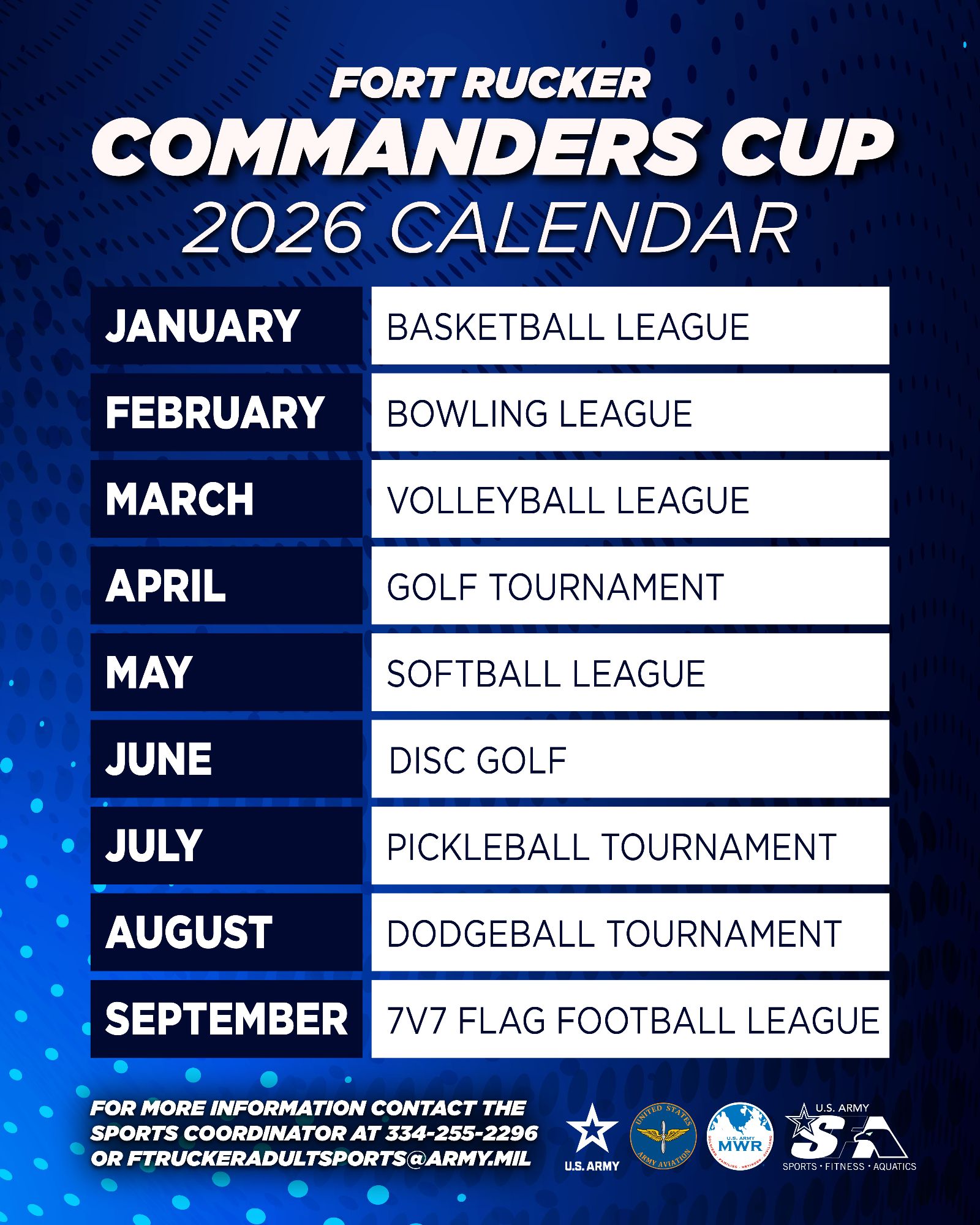 All coaches meetings will be held at the Fort Rucker Physical Fitness Center Conference Room.