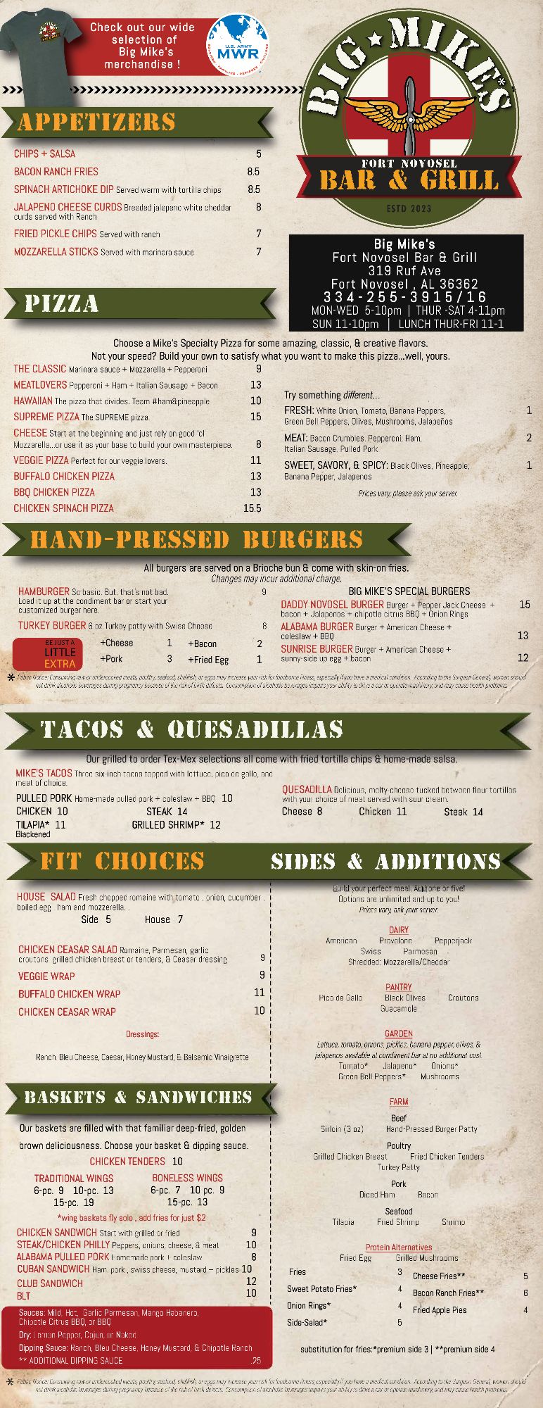 The Flight Line Menu (Limited Menu 11am-5pm Monday-Thursday)