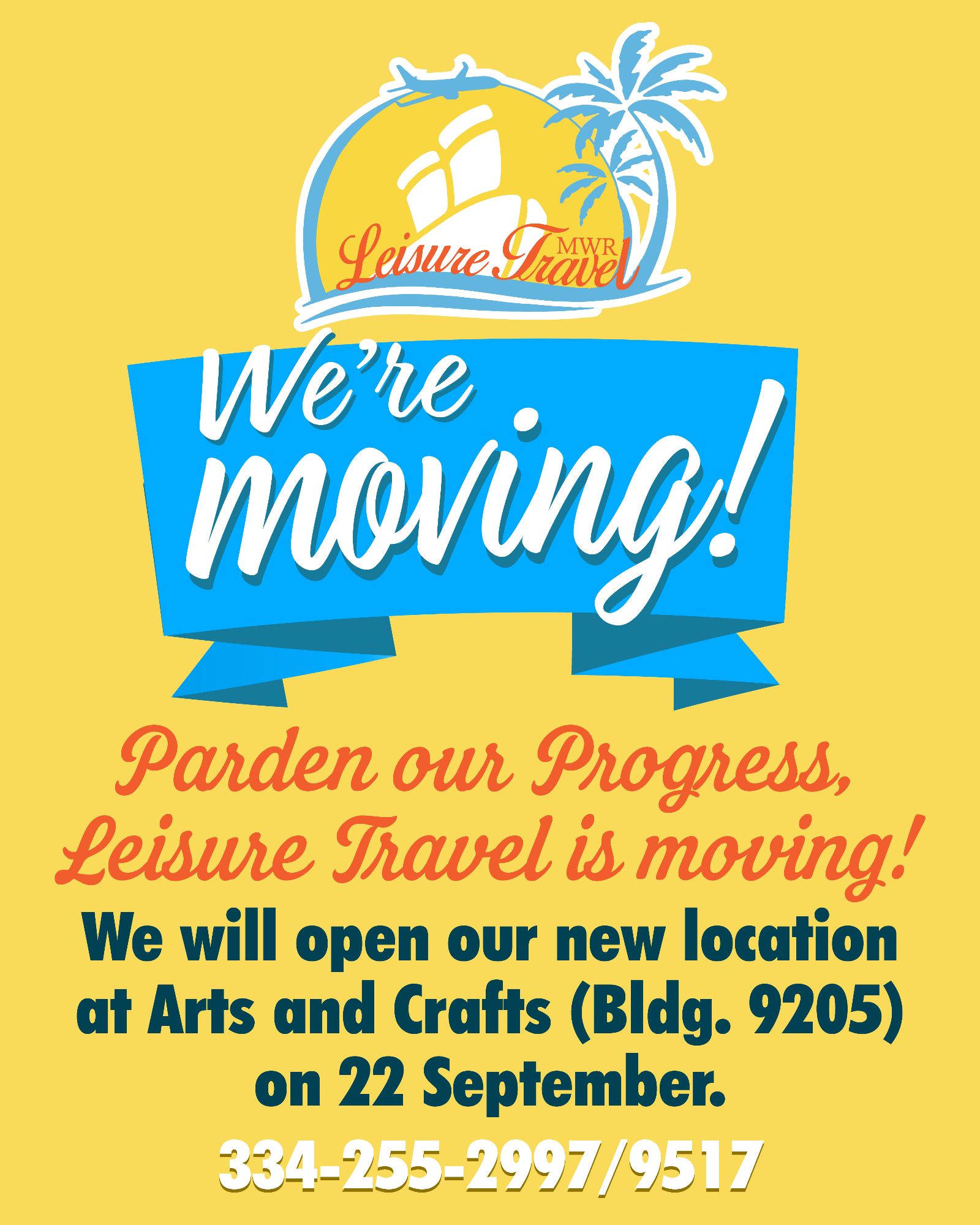 MWR Leisure Travel is now open! Located at the Center Library and is a full-service travel agency that provides a range of travel services to Active Duty, Retired military personnel, their Family members, DoD Civilians, and other members of the military community. We are also your one-stop shop to receive the latest and greatest information on MWR events and activities on Fort Rucker. You are able register for special events at the Landing and ODR tickets may be purchased at your MWR Leisure Travel office.