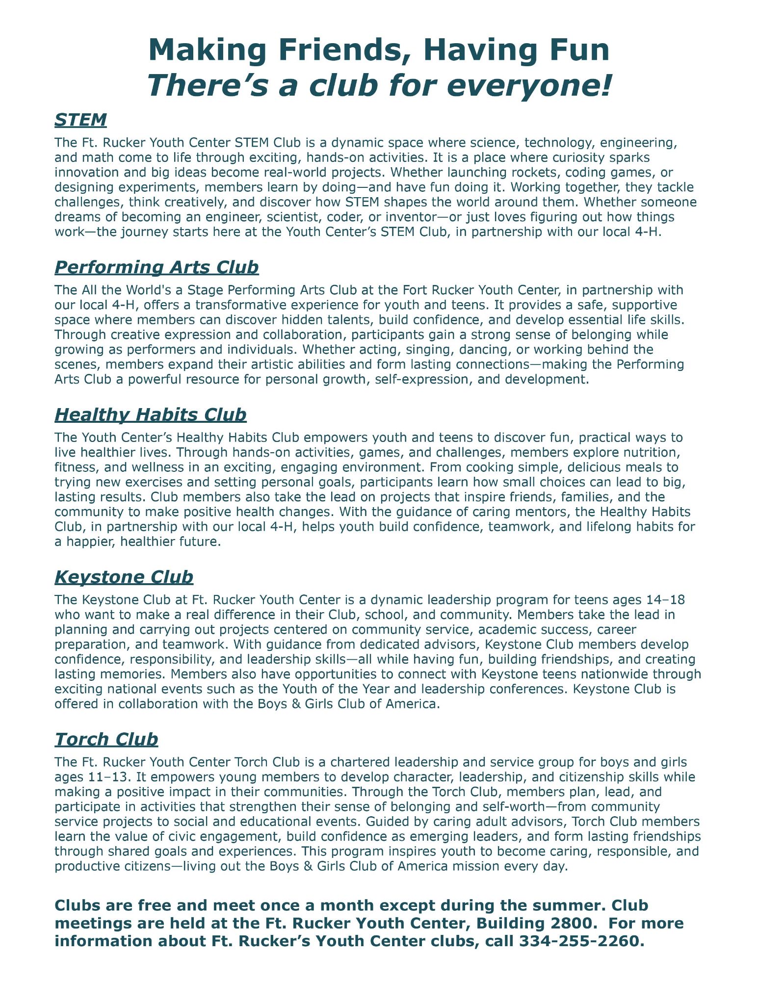 Welcome to the Ft. Rucker Youth Center – Where Growth, Fun, and Friendship Meet!